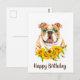 Carte Postale Aquarelle mignonne Bulldog & Sunflowers Anniversai