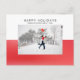 Cette carte de vacances photo moderne à deux tons dispose d'un arrière - plan irisé couleur eau rouge à la moitié inférieure.