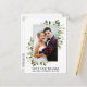 Élégante Carte de Remerciement de Mariage Aquarelle Noël Verdure comprend des feuilles d'eucalyptus et des baies de houx rouges. Cadre doré.