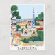 Carte Postale Aquarelle rétro Barcelone Espagne Voyage