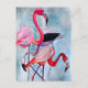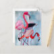Beau aquarelle colorée de la peinture originale de Sacha Grossel de flamants roses et orange contre un arrière - plan bleu ciel. Joli art flamand.