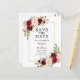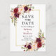 Elégante aquarelle Bourgogne Floral Enregistrer la date Mariage Fiançailles Faire-part Postcard comprend des roses bordeaux, roses roses roses, roses rouges et verdure botanique sur un cadre doré.