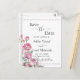 Carte Postale Aquarelle rose rose Enregistrer la date