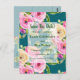 Des roses luxuriants dans les tons rose, rougis, pêche, crème et plus fleurissent sur un arrière - plan turquoise. Cette carte postale d'annonce Enregistrer la date peut être facilement personnalisée pour répondre aux besoins de votre événement.