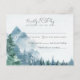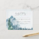 Le design de la carte RSVP de mariage rustique des fêtes à thème est composé d'aquarelles et de montagnes sur un arrière - plan d'aquarelle bleu poussiéreux. La typographie associe le lettrage traditionnel au texte à lettres manuscrites moderne. #WeddingInvitations #DustyBlueWedding #WeddingInvite