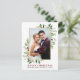 Elégante aquarelle hiver verdure Joyeux Mariage de Noël Photo Fêtes nouvellement mariées La carte postale comprend des feuilles d'eucalyptus et des baies saintes rouges. Cadre Or.