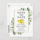 Aquarelle Moderne Eucalyptus Vert Citrons Or Cadre Enregistrer La Date Fiançailles Carte Postale