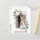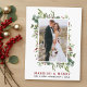 Elégante aquarelle Winter Greenery Marié & Joyeux Mariage Photo New-lysée Holiday La carte postale inclut des feuilles d'eucalyptus et des baies sèches rouges.