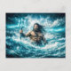 Carte Postale Aquarius Zodiac with Trident Warrior in Stormy Oce