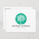 Coordonner avec l'entraîneur de la Vie de l'Aquarelle Verte, les conseillers, modèle de carte d'affaires d'ici 12 h 01. Un cercle vert d'aquarelle contenant un simple arbre blanc avec feuille est le design visuel parfait pour accompagner votre nom ou nom d'entreprise sur ce modèle de carte postale personnalisable. Art et design © 1201AM