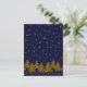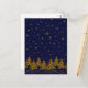 Carte Postale Arbre de Noël en or brillant, étoiles, neige sur b