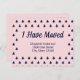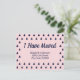 Vous pouvez personnaliser le texte bleu foncé avec votre nom et votre nouvelle adresse. En haut, vous pouvez customiser le script bleu foncé qui dit "J'ai bougé". Ce faire-part en mouvement rose pâle a un motif de Noël bleu foncé sur le devant. Le dos est rose pâle.
