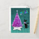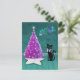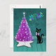 Carte Postale Arbre Rose Argent Noël Chat Noir Atomique Sarcelle
