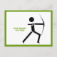 Archer avec son arc noir, tir à l'arc vert personnalisé carte postale horizontale qui présente une icône minimaliste d'une silhouette noire d'un archer et votre texte sur un arrière - plan blanc avec bordure verte. Personnalisez-le et changez le texte avec monogramme, nom ou message.