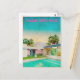 Carte Postale vintage en rose et bleu rétro montrant un design de maison moderne du milieu du siècle avec Palm Trees à Palm Springs en Californie