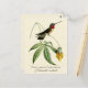 Carte postale avec illustration vintage de l'histoire naturelle par Antoine-Germain Bevalet, c. 1874, du colibri de Starthroat (Heliomaster constantii.) Un colibri vert avec poitrine blanche et gorge rouge vif perche sur un plante tropical avec une fleur jaune et rouge, avec une texture parchemin jaune clair arrière - plan. numériquement nettoyé et amélioré tout en conservant ses caractéristiques vintages. Caractéristiques communes et scientifiques dans les polices décoratives.