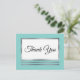 Simple, élégant et moderne aqua et blanc avec bordure en argent (imprimé) et texte noir "Merci" carte postale avec modèle arrière pour adresse de retour. Design original par Holiday Hearts Designs (tous droits réservés).