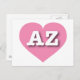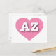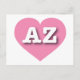 Cette carte postale présente un coeur rose et cool contenant les lettres coques en haut, blanc et gras AZ, l'abréviation officielle de Arizona, l'état du Grand Canyon.