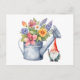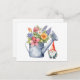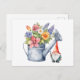 Carte Postale Arrosoir avec fleurs et gnome de jardin