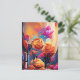 Carte postale d'art abstrait floral orange rouge fleurs bleues