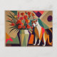 Carte Postale Art cat avec fleurs