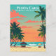 Remontez le temps jusqu'à l'âge d'or des vacances à la plage avec cette carte postale vintage de Punta Cana. Cette illustration rétro capture un charmant moment côtier avec des parasols colorés, des palmiers et des vagues turquoise. Parfait pour ceux qui aiment l'art de voyage nostalgique et les vibes des Caraïbes