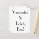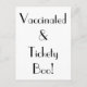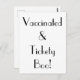 Carte postale Art déco avec le message "Vacciné et Tickety Boo !". Envoyez cette carte pour indiquer aux gens votre état de vaccination et comment vous vous sentez! Personnalisez facilement ce message en modifiant le texte modèle. Élégant simple lettrage noir minimal sur un arrière - plan blanc éclatant. Montrez votre style avec ma collection Art Déco. Merci d'avoir vu mes designs !