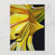 avec un design original de la peinture aquarelle de la fleur de lys jaune et dorée de Sacha Grossel. Ce design botanique de pétales de lys jaunes dorés contre un arrière - plan noir et foncé est abstrait et dramatique. Ce design floral montre la fleur en gros plan, macro et les couleurs vives et vives en font un design artistique, inhabituel, abstrait.