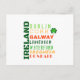 Graphisme de style métro listant les principales villes d'Irlande dans diverses polices et couleurs sur le thème irlandais