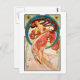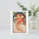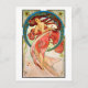 Affiche de lithographie Art nouveau de 1898 de l'artiste tchèque Alphonse Mucha (1860-1939). Belle femme en robe rouge, fleurs dans ses cheveux longs, fluides, rouge vif, son dos arqué, regardant sur les épaules bardées, debout sur ses orteils.
