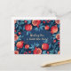 Shana Tova U'Metuka ! Carte postale bleu foncé avec rouge avec grenades autour et souhait personnalisable