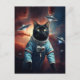 Une image captivante d'un chat noir habillé en astronaute, regardant avec confiance dans le cosmos. Entouré de soucoupes volantes et d'une nébuleuse vibrante, le chat incarne un sentiment d'aventure et de mystère.