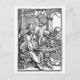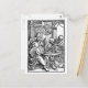 Cartes postales astronomes. Vieux dessin en bois noir et blanc de l'astronome à une table avec squelette tenant le crâne sur un côté.
