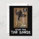 Monture de canard avec un canard colvert mort et huilé, du matériel de déplacement terrestre, un crâne et des os croisés. Le texte "STOP THE TAR SANDS" apparaît également. Malheur à toute sauvagine qui atterrit dans un bassin de résidus toxiques en Alberta où un pétrole extrêmement visqueux est extrait des sables bitumineux (c'est-à-dire des sables bitumineux) avec d'horribles effets de l'environnement. Les sables bitumineux de l'Alberta sont constitués de pétrole brut lourd mélangé avec du sable, de l'argile et du bitume. L'extraction implique la combustion du gaz naturel pour générer suffisamment de chaleur et de vapeur pour faire fondre l'huile du sable. Pas moins de cinq barils d'eau sont nécessaires pour produire un seul baril de pétrole. Chaque jour, des millions de litres d'eau sont contaminés par des produits chimiques, dont l'arsenic, le cuivre, le plomb et le zinc, pour séparer fondamentalement l'huile de sables bitumineux (appelée bitume dilué) du sable. Mais l'eau est tellement contaminée après ce processus qu'ils doivent la stocker dans des boues toxiques appelées bassins de résidus. On estime que 3 millions de gallons d'eau contaminée fuient chaque jour des bassins de décantation dans la rivière Athabasca en Alberta et dans le paysage environnant. Dites non aux sables bitumineux.