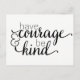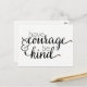 Dans cette époque moderne de technologie, les notes d'amour manuscrites deviennent un art perdu. Pourquoi ne pas égayer la journée de quelqu'un avec une surprise de la vie motivation citée carte postale. Cette carte postale typographique présente la citation Ayez du courage et soyez gentils imprimés en polices noires.