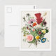Cette carte postale est une reproduction d'une lithographie vintage montrant un bouquet de fleurs.