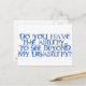 "Avez-vous la capacité, de voir au-delà de mon handicap ?" Beaucoup posent la question, mais c'est comme si elle était ignorée. Mettez-le là en vue. Ce design se retrouve sur des t-shirts, des tasses, des magnets, des cadeaux et bien plus encore.