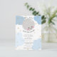 "Nous sommes au-dessus de la lune" invitation baby shower avec de mignons nuages bleus et la lune or/parties scintillant et étoiles.