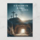 Une représentation puissante du tombeau vide au lever du soleil, avec une lumière radieuse se déversant par l'entrée ouverte et trois croix silhouettées sur la colline lointaine. Une scène pleine d'espoir, de renouveau et de la promesse de nouveaux débuts.