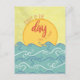 'Aujourd'hui est le jour Faites-le compter', une carte postale inspirante. Lever de soleil au-dessus de la mer illustration avec la citation enveloppée autour et au soleil. Un excellent morceau à envoyer à un ami ou à exposer dans votre maison ou votre bureau.