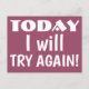 C'est une carte postale de citation motivationnelle de couleur prune cool qui dit : 'AUJOURD'HUI JE vais ESSAYER ENCORE !' imprimé en grandes lettres blanches. Excellent rappel pour ne jamais abandonner ! Toujours essayer à nouveau !