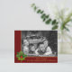 Personnalisez l'avant et l'arrière de cette carte postale de Noël amusante. Un design moderne et propre carte de Noël avec votre photo de famille convertie automatiquement en noir et blanc remplissant le visage de la carte derrière un cadre rouge et or de Noël mis en évidence avec une pince de pin et de houx. Le groupe de bas tient vos noms et voeux de Noël dans une police d'or. Vous pouvez personnaliser l'accueil de vacances en arrière, votre adresse de retour et vos noms en script près du bas avec de l'espace pour ajouter une note personnelle manuscrite.