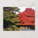 Le pin rouge contraste avec l'érable japonais écarlate au-dessus d'un petit pont