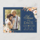 Automne Gold Floral Navy Blue Photo Enregistrer la date Carte postale