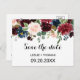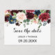 Cette automne rustique bourgogne éblouissante enregistrer la carte date est parfait pour un mariage simple. Le design est composé de fleurs bordeaux, rouges, navales, bleues et rousses rayonnantes et gracieuses peintes à la main, inspirant la beauté naturelle.