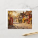 This digital artwork features a quaint English village bathed in the warm, golden hues of autumn. A traditional red telephone box stands on the corner, slightly weathered, adding a touch of classic English charm.