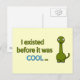 Un drôle de dinosaure vert, à l'allure amicale et au message amusant : J'existais avant qu'il soit cool. C'est une blague qui fait référence au fait que les dinosaures vivaient avant l'âge de glace et aussi une excellente façon de montrer à quelqu'un à quel point vous êtes cool et sage.