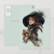 Scène vintage avec une femme à la mode dans un grand casquette élégant tenant son petit chien.