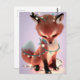 Une carte postale avec un petit bébé renard mignon qui regarde vers le bas avec des guirlandes lumineuses enroulées autour de lui. Une ambiance de Noël douce et sucrée.