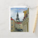 Une belle vue des bâtiments de la vieille ville de Tallinn en Estonie imprimée sur une carte postale.